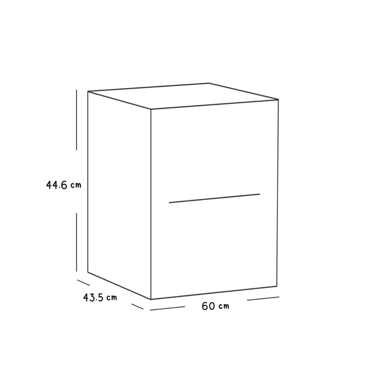 الأبعاد: العرض 60 سم – العمق 43.5 سم – الارتفاع 44.6 سم.