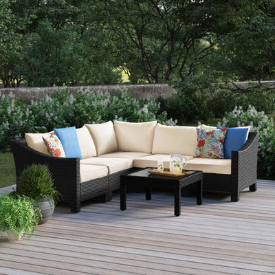 الخامة حديد معالج + رتان أسود + قماش دك ضد الشمس