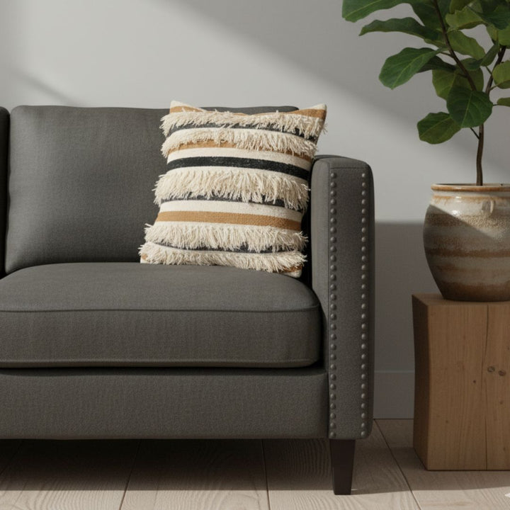 fully handmade from 100% natural wool. This cushion features filling of cotton and fiber that provides a perfect blend of comfort and firmness, making it an ideal choice to add a touch of elegant sophistication to any room. Its handmade design combines natural beauty and high quality to give you a unique piece that adds a sense of warmth and refinement to your decor. Choose quality and excellence with Oscar Furniture.