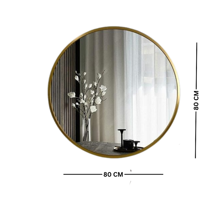 The ZSL-054 mirror features an elegant circular design that combines simplicity and luxury, made from electrostatic oven-painted steel resistant to rust and moisture to ensure long-lasting shine.