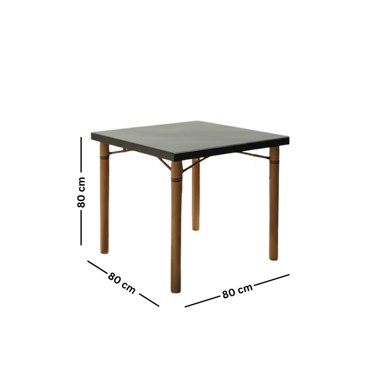 Table: width 80 cm – depth 80 cm – height 80 cm.