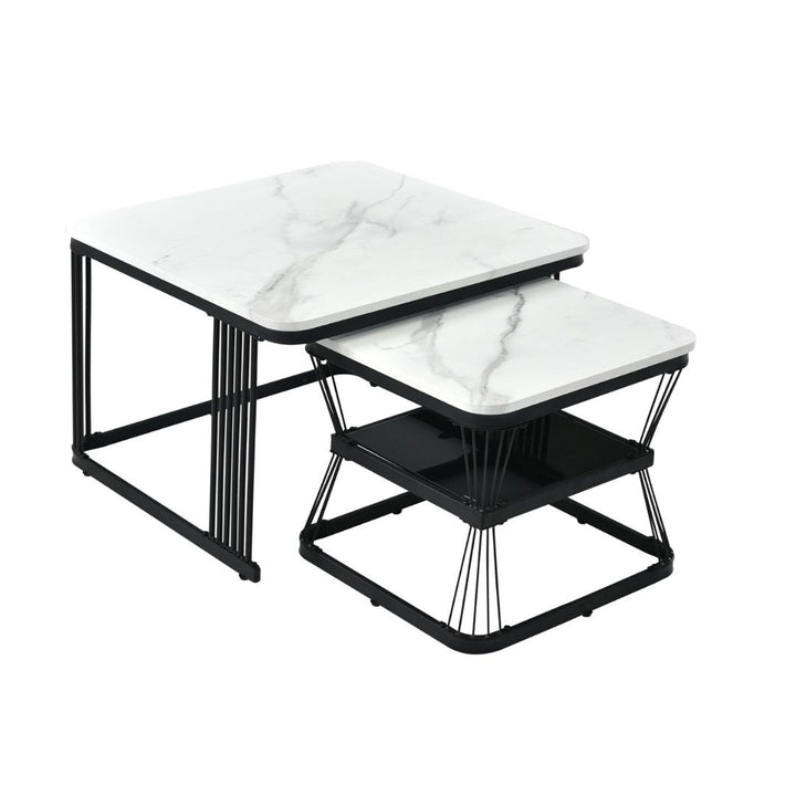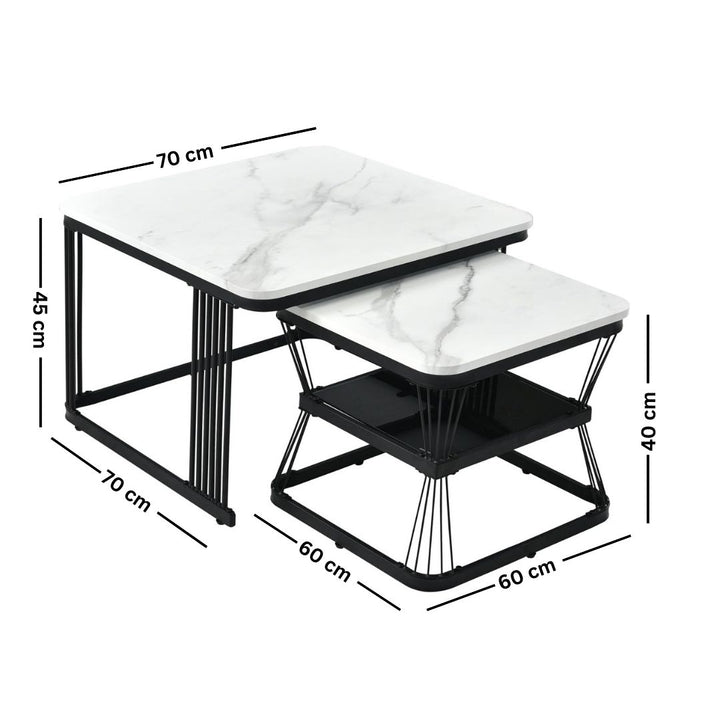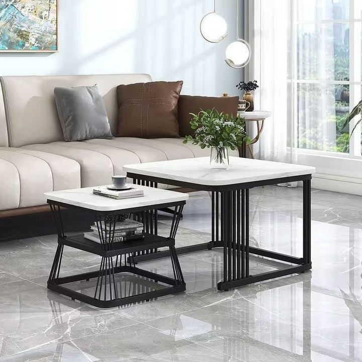 Set of metal coffee tables with marble top – luxurious modern design (2 pieces)