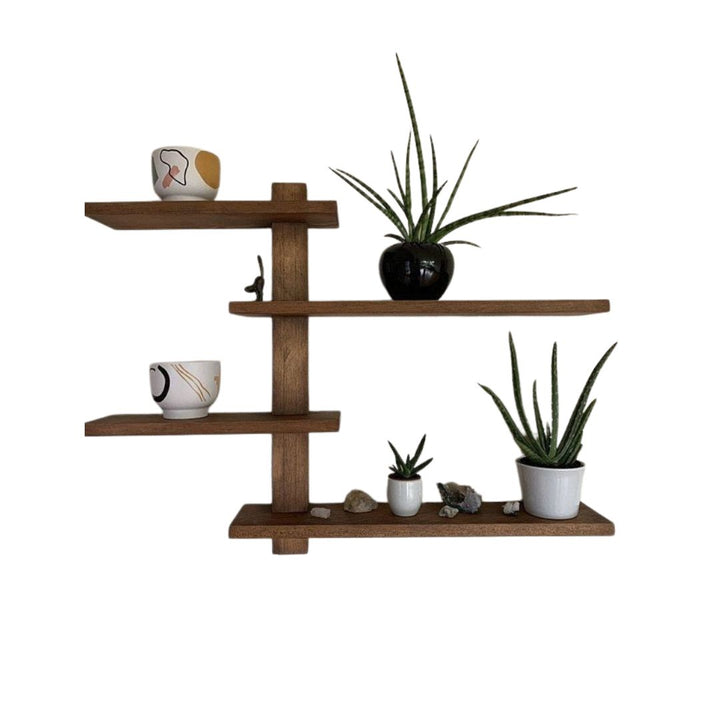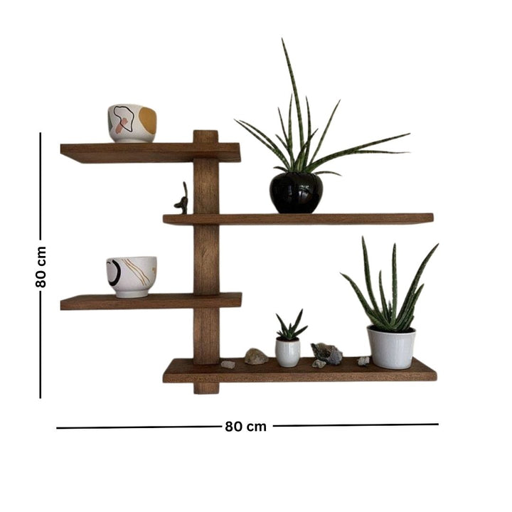 A wide wall shelf with a simple modern design that combines natural beauty and durability. Made entirely from high-quality natural Moski wood known for its hardness and warm appearance that adds a touch of luxury and warmth to any room. Its large symmetrical design makes it perfect for displaying books, antiques, or plants in an organized and elegant way. A practical decor piece that combines refined taste and high quality that distinguishes Oscar Furniture.