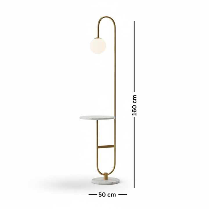 تتميز الأباجورة بقاعدة رخام أبيض كرّارة فاخر تضيف لمسة من الثبات والرقي إلى التصميم العصري الرفيع.