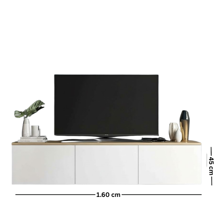ترابيزة التلفزيون KBA-017 هي الاختيار المثالي لعشّاق الأناقة العملية. تأتي بتصميم عصري واسع بمقاس 160 سم وعمق 35 سم وارتفاع 45 سم، مما يوفر مساحة مريحة لوضع التلفزيون والأجهزة الإلكترونية. مزودة بـ3 دلف تخزين لتحتفظ بكل ما تحتاجه من أجهزة، كتب، أو إكسسوارات بشكل أنيق ومنظم. مصنوعة من خشب MDF عالي الجودة لضمان الثبات والمتانة وسهولة التنظيف. اختار ترابيزة TV KBA-017 لتجعل كل زاوية في بيتك متكاملة مع لمسة اوسكار فرنتشر.