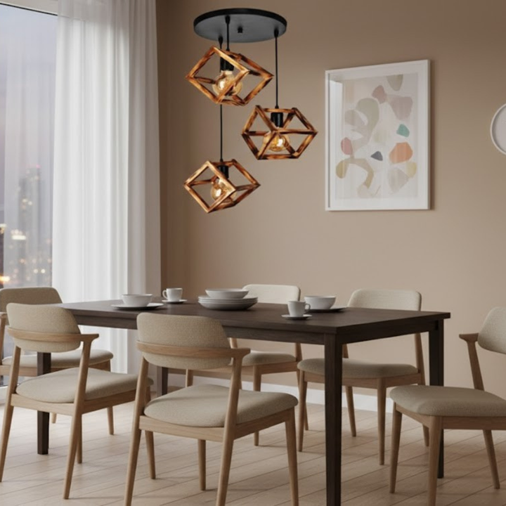 أضف لمسة طبيعية فاخرة إلى منزلك مع دلاية السقف الخشبية الثلاثية من أوسكار فرنتشر بتصميم الستايل المحروق الأنيق.