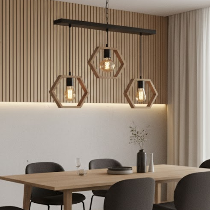 استمتع بإضاءة مميزة تجمع بين الطابع الطبيعي والفخامة مع دلاية الخشب الطبيعي موديل SKN-006 من أوسكار فرنتشر.