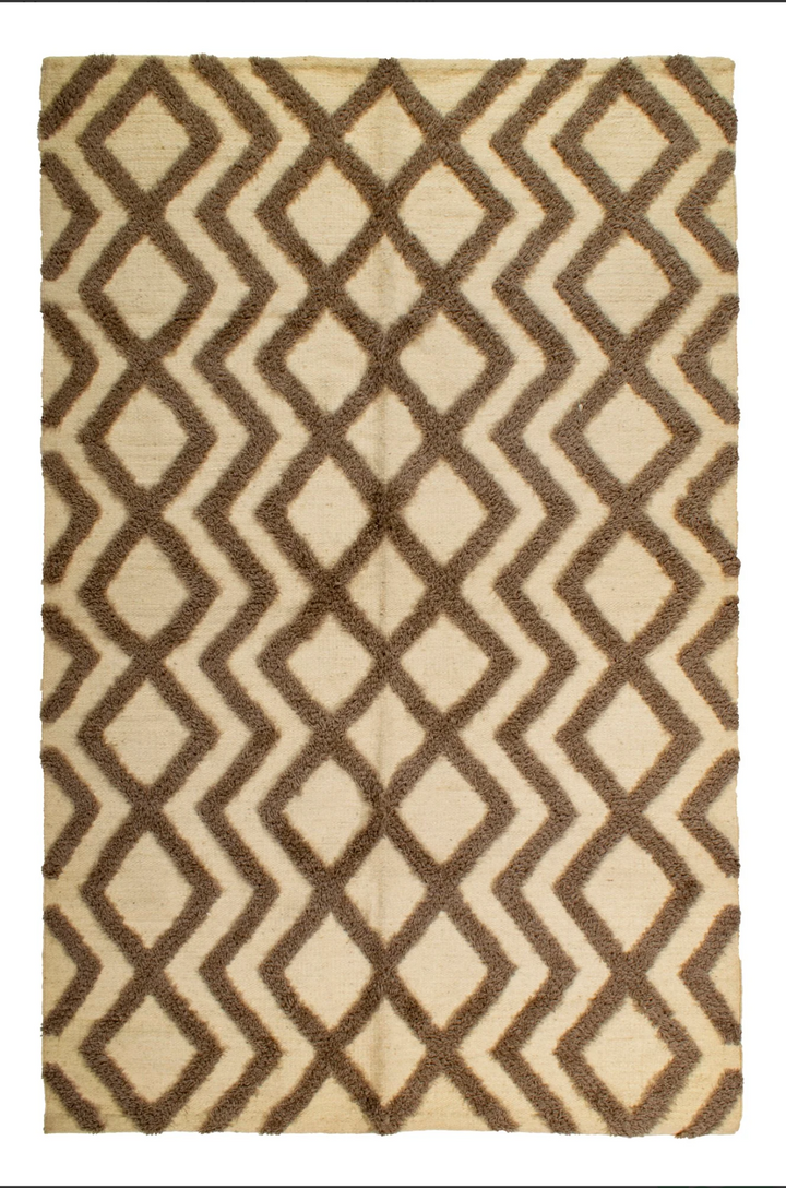 سجادة صوف طبيعي صناعة يدوية – لون أوف وايت وكافيه – موديل ROF-008