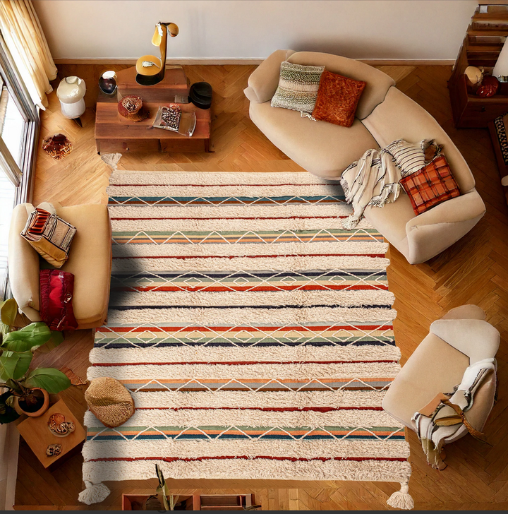 سجادة صوف طبيعي صناعة يدوية متعددة الألوان – موديل ROF-058