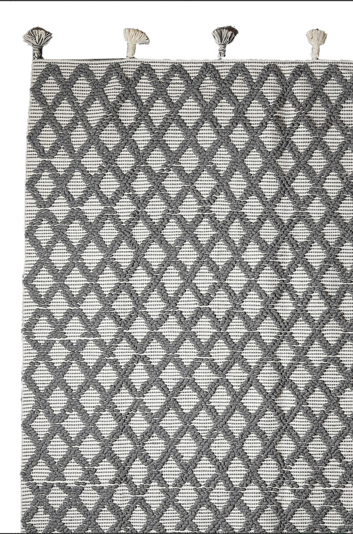 سجادة صوف طبيعي صناعة يدوية – لون أوف وايت ورصاصي غامق – موديل ROF-018