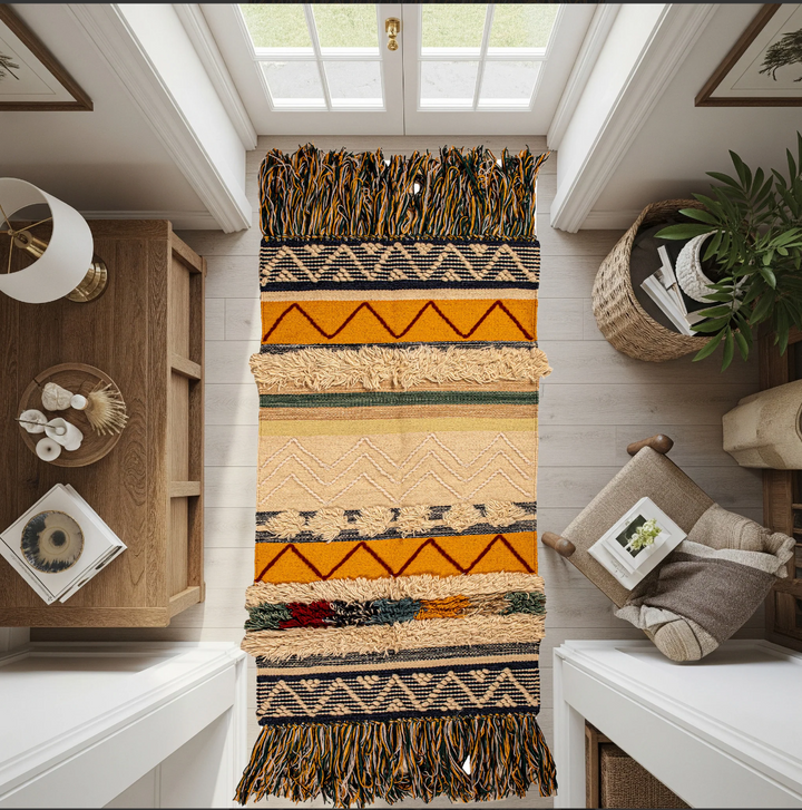 سجادة صوف طبيعي صناعة يدوية متعددة الألوان – موديل ROF-045