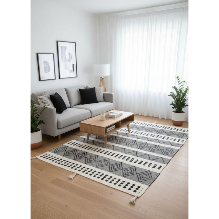 سجادة صوف طبيعي صناعة يدوية – لون أوف وايت ورصاصي غامق – موديل ROF-048