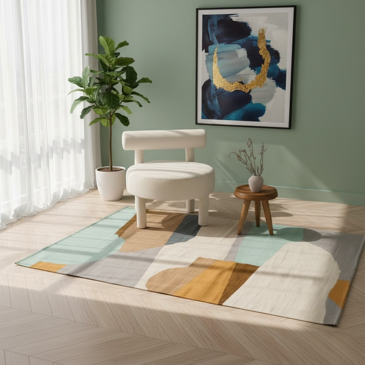 أضف لمسة من الحيوية والأناقة الطبيعية إلى منزلك مع سجادة الصوف اليدوية متعددة الألوان من أوسكار فرنتشر.