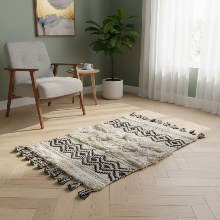مصنوعة يدويًا من صوف طبيعي عالي الجودة يمنح ملمسًا ناعمًا ودافئًا تحت القدمين، وتأتي بتصميم متعدد الألوان (Multiple Colors) يضفي طابعًا مبهجًا وحيويًا على أي مساحة داخلية.