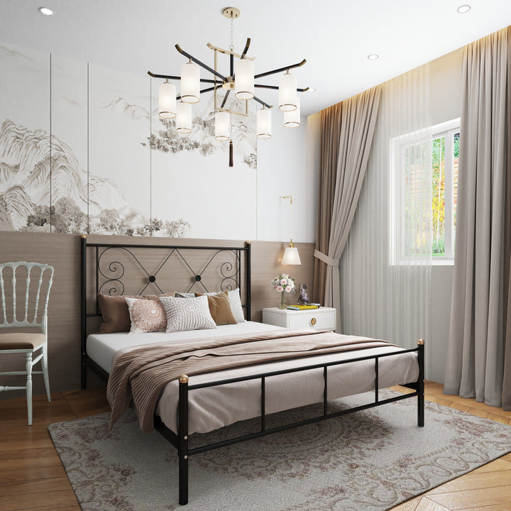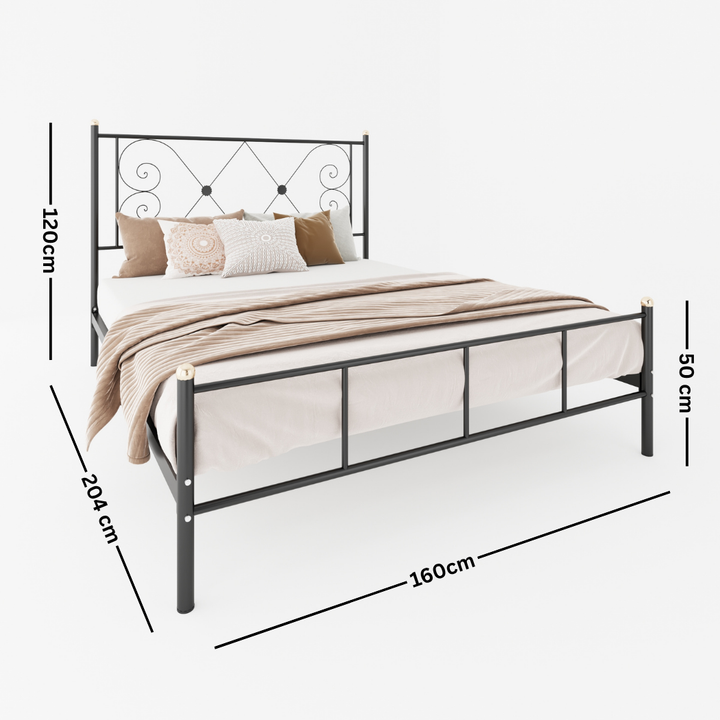 سرير معدني MES-068 – تصميم فاخر من الحديد المطلي بالكتروستاتيك مع قاعدة خشب موسكي قوية