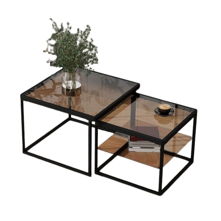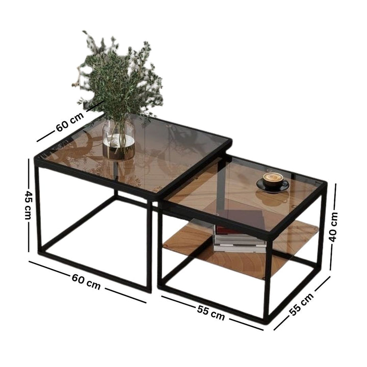 طقم ترابيزات قهوة معدنية بسطح زجاجي – تصميم مودرن فاخر (عدد 2)
