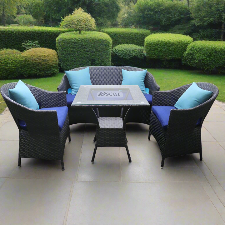 احصل علي طقم حديقة خارجي أنيق مكون من كنبة 2 مقعد و 2 كرسي و طاولة حتي تشعر بالتجديد في حديقتك، مصنوع من الراتان البيور ، واجعل حديقتك دائمًا مُجهزة لك ولضيوفك.