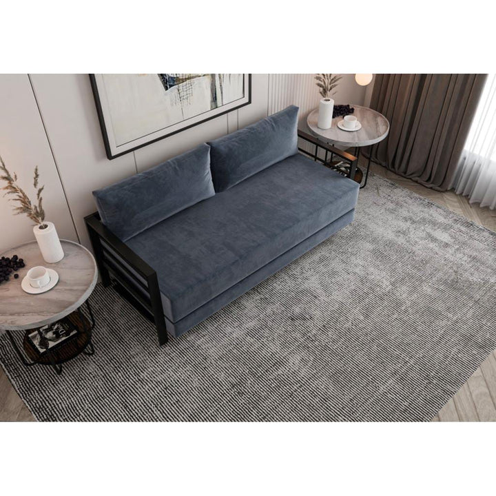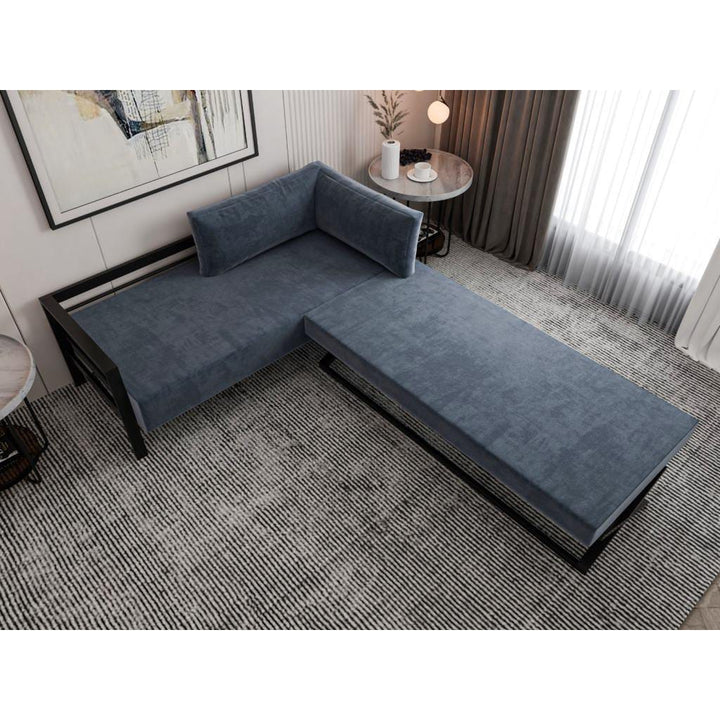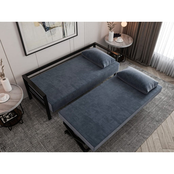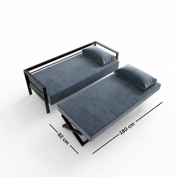 كنبة متعددة الاستخدام – تصميم عصري بخامة ستيل وقماش قطيفة جلد مقلوب فاخر – لون أسود ورمادي