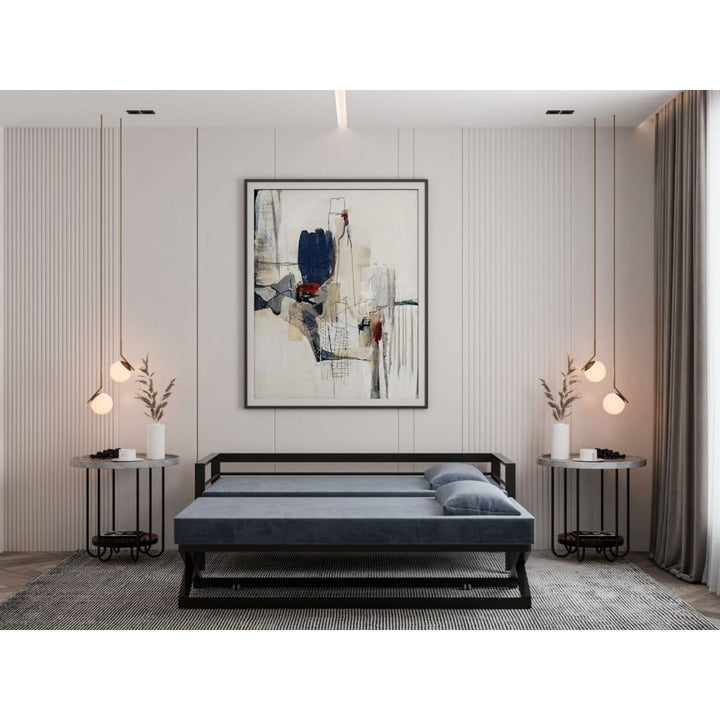 تتحول الكنبة بسهولة إلى سرير عملي بفضل الميكانيزم المصري القوي، مع هيكل معدني من الستيل المقاوم وخشب موسكي متين لضمان الثبات والاستدامة.