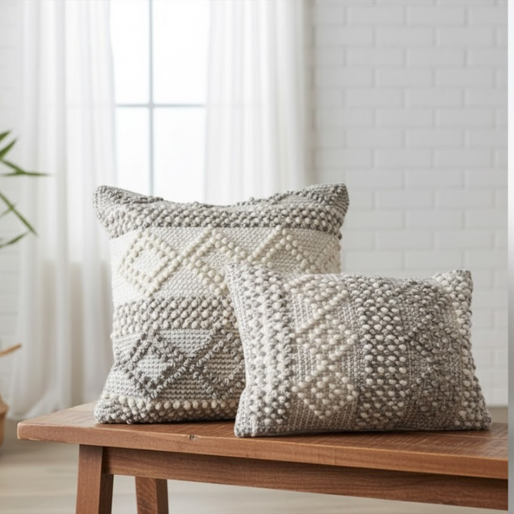 أضف لمسة دفء وفخامة طبيعية لبيتك مع كوشن الصوف الهاند ميد من أوسكار فرنتشر.