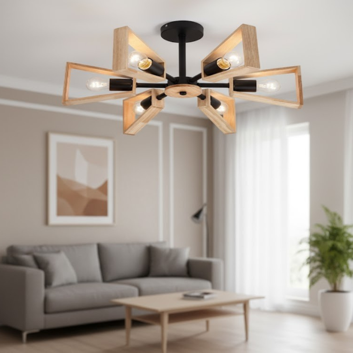 اجعل الإضاءة جزءًا من ديكورك مع نجفة الخشب الطبيعي والمعدن موديل SKN-041 من أوسكار فرنتشر.