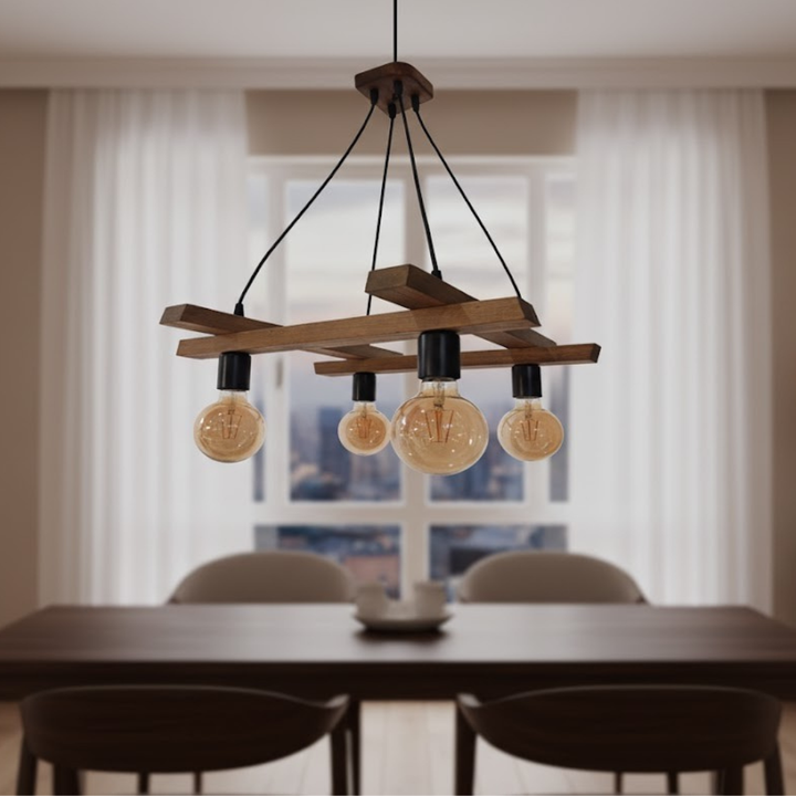 اجعل الإضاءة جزءًا من ديكورك مع نجفة الخشب الطبيعي موديل SKN-015 من أوسكار فرنتشر.