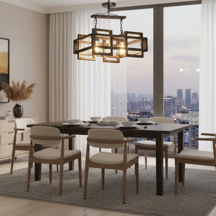 استمتع بتصميم يجمع بين الأصالة والفخامة مع نجفة الخشب الطبيعي موديل SKN-038 من أوسكار فرنتشر.