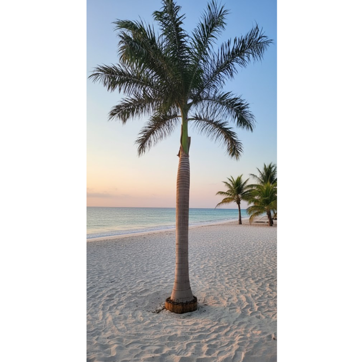 نخل الملوكي (أوروديكسا) هو واحد من أجمل أنواع نخيل الزينة التي تضفي على المكان طابعًا استوائيًا مميزًا وفخمًا. يتميز بلونه الأخضر اللامع وساقه القوي المنتصب الذي يمنح شكلاً ملكيًا أنيقًا يناسب مختلف التصميمات الخارجية. يمكن أن يتراوح ارتفاع النخلة من 2.5 متر إلى 5 أمتار حسب احتياج المكان وطبيعة التصميم.