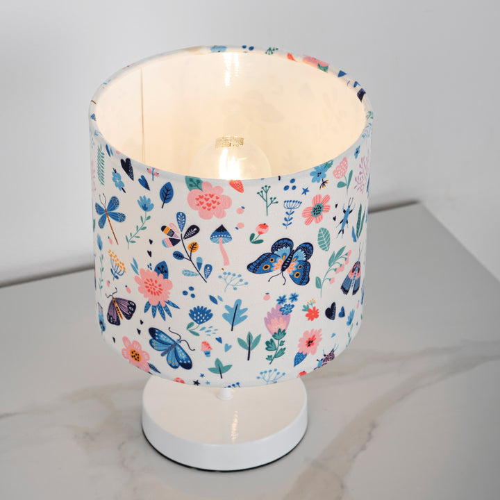 أباجورة استاند مودرن WDD-016 – تصميم أنيق من المعدن المطلي باللون الأبيض مع شابو قطيفة فاكيوم مقاوم للحرارة