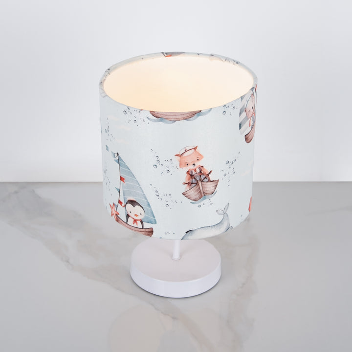 أباجورة استاند مودرن WDD-030 – تصميم فاخر من المعدن المطلي باللون الأبيض مع شابو قطيفة فاكيوم مقاوم للحرارة