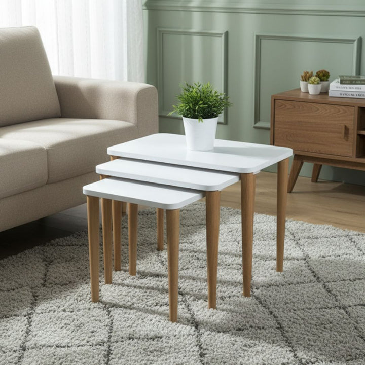 طقم ترابيزات جانبية ثلاثي – خشب MDF وأرجل موسكي بدهان دوكو + أوستر – موديل CHW-091 من أوسكار فرنتشر