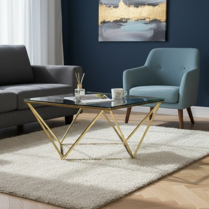 ترابيزة قهوة استيل مطلي – سطح زجاج شفاف 6 مم – تصميم عصري أنيق – موديل ZSL-035