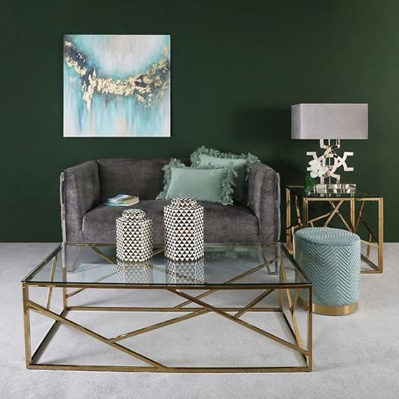 ترابيزة قهوة استيل مطلي – سطح زجاج شفاف 6 مم – تصميم عصري فاخر – موديل ZSL-037
